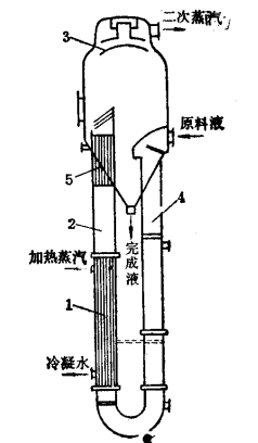 1-加熱室;2-加熱管;3-循環(huán)管;4-蒸發(fā)室;5-除沫器;6-擋板;7-沸騰室